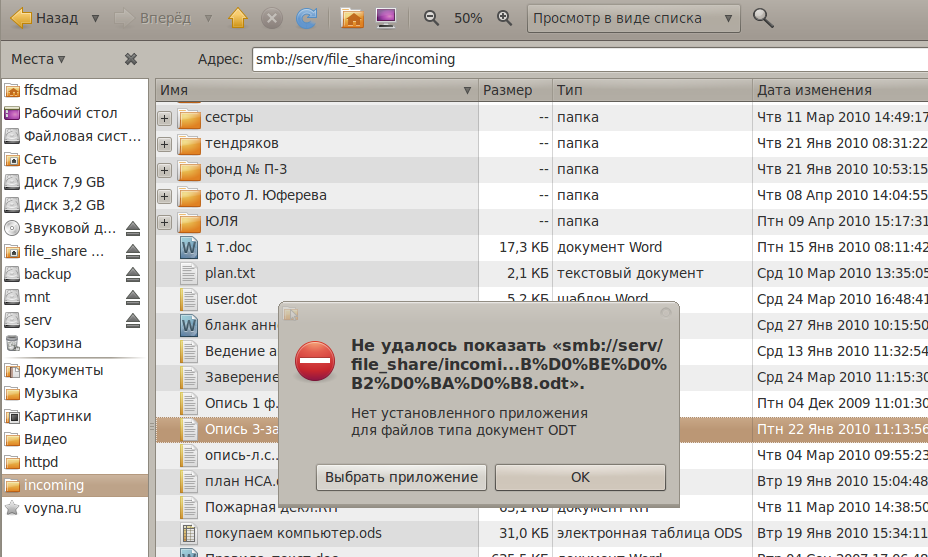 Nautilus не открывает файлы размещённые на smb шареВсплывающие уведомления в Ubuntu 10.04