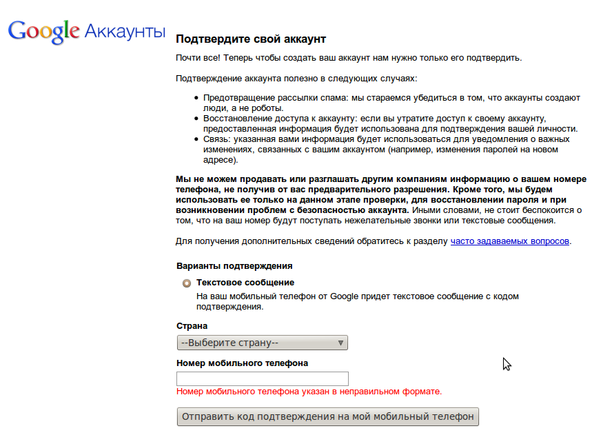 Попробуйте создать новый аккаунт в Google и вы столкнётесь с обычной необходимостью создания почтового ящики и неприятной обязанностью указать свой личный сотовый телефон