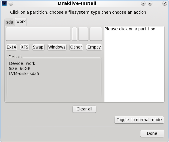 Во время эксперимента с PCLinux OS у меня случилась досадная штука, при подготовке дисков к устновке, я нажал кнопку "Clear all", наивно полагая, что ей я сброшу текущее задание для инсталятора.
